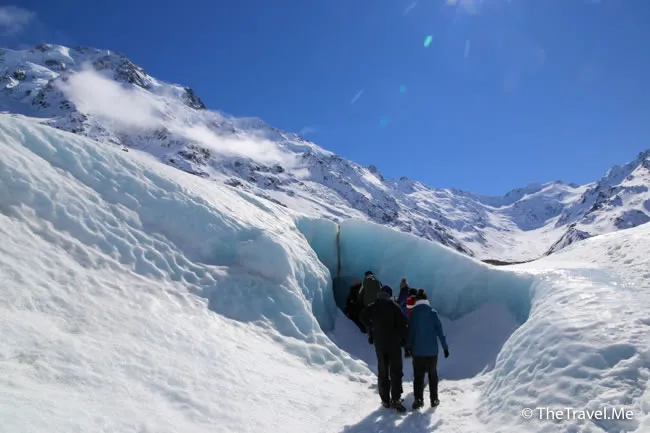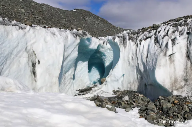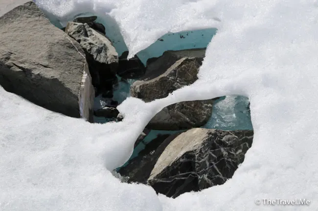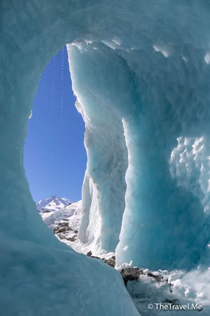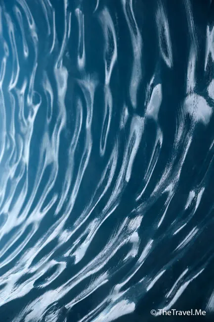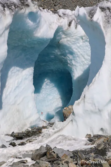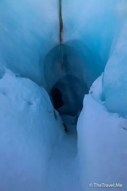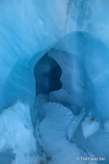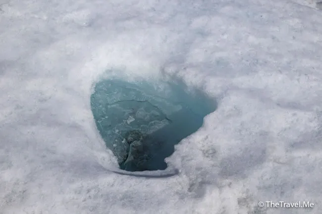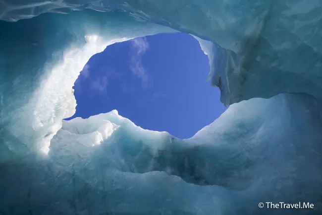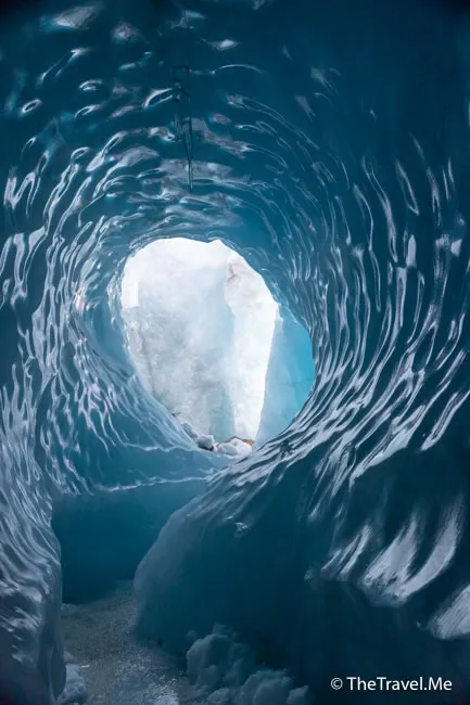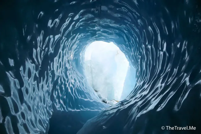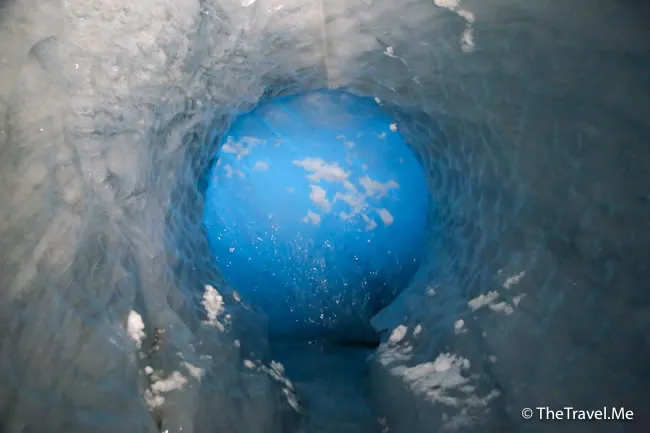冰川上的冰洞一般係由溶冰的水造成,所以洞口非常光滑。