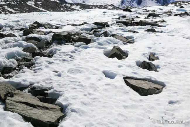 有石頭覆蓋的冰川會溶得比較慢,所以地勢比較高,其實冰川不只是冰,當中還夾雜了大量沙石。