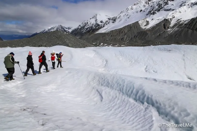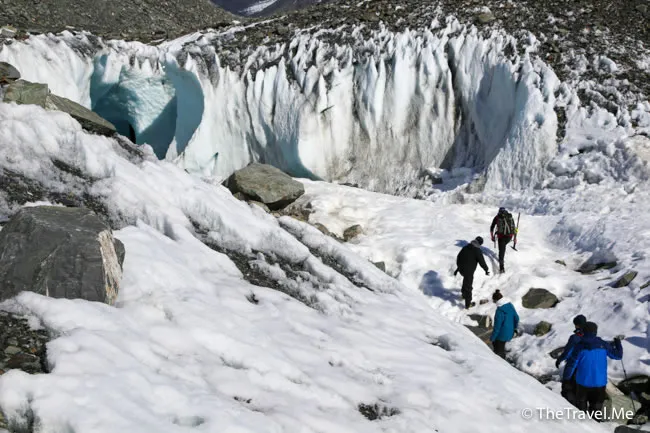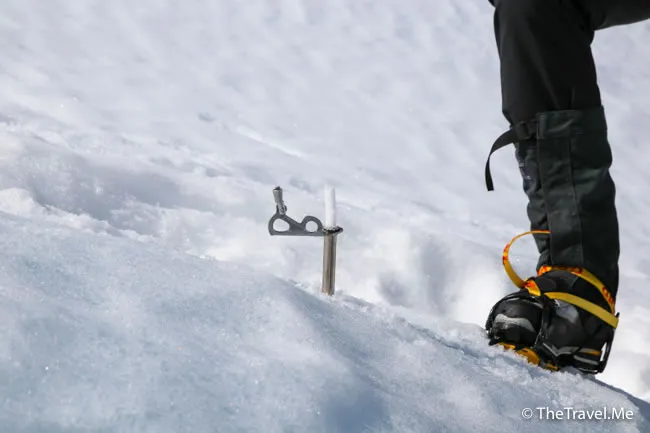 在冰川上行走,一定要一個跟一個,否則隨時會踩落冰洞,後果不堪設想。