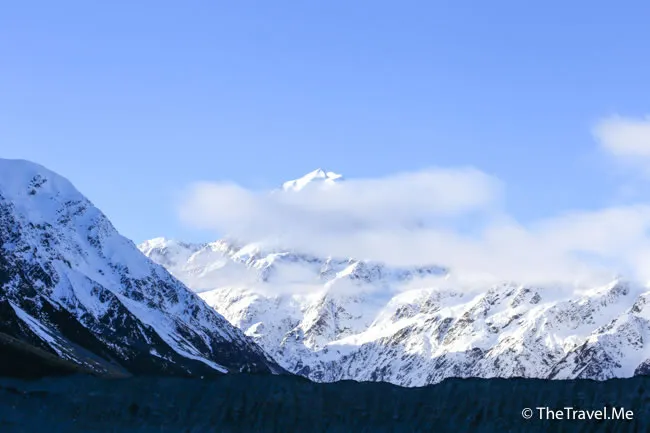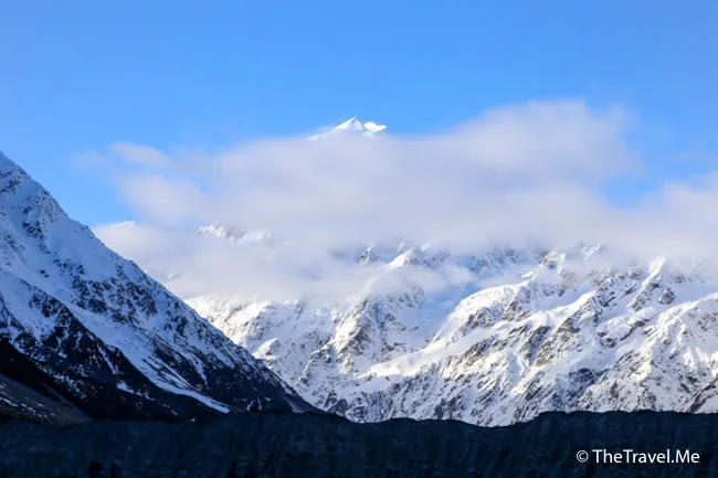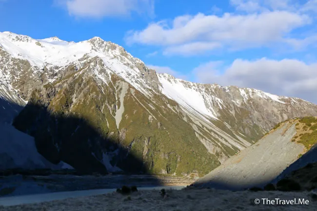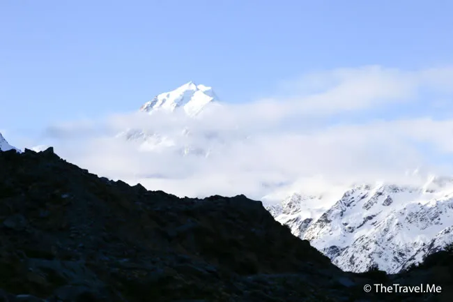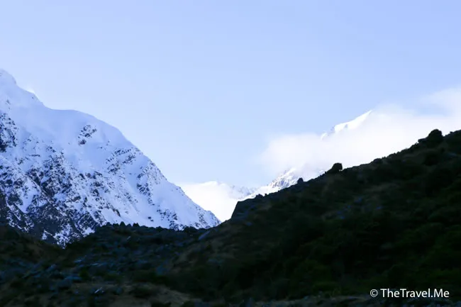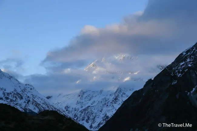 庫克山因為夠高,仍然受陽光照耀,綻放出奪目的銀白色。