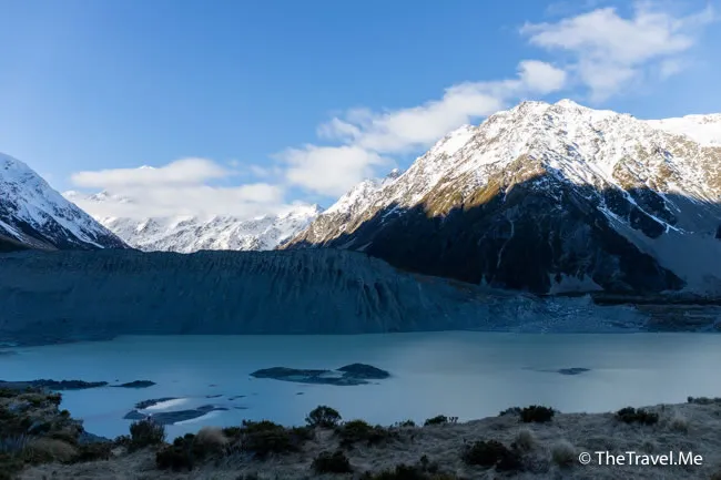 慕拿湖和庫克山之間的「水壩」,其實是由冰川侵蝕造成的特殊地貌,十分壯觀。
