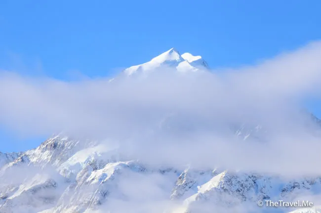庫克山越來越近,卻被一片雲擋着,看得不太清楚。