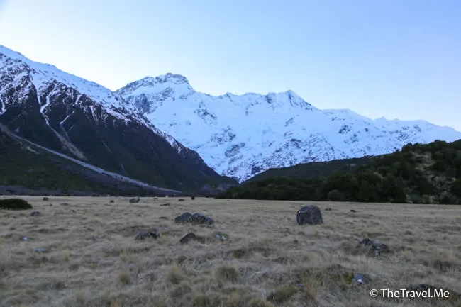 途中經過胡克谷(Hooker Valley)的入口,胡克谷也是個風景漂亮的地方,但一來一回起碼要四個小時。