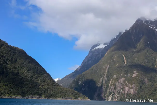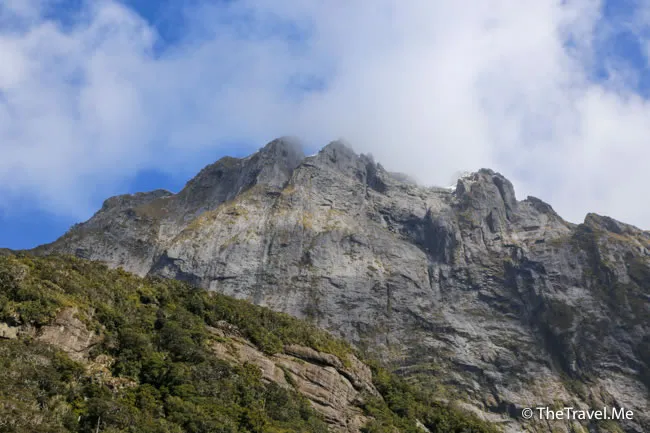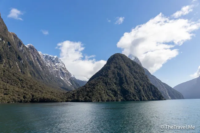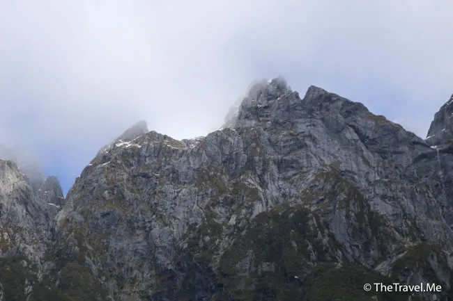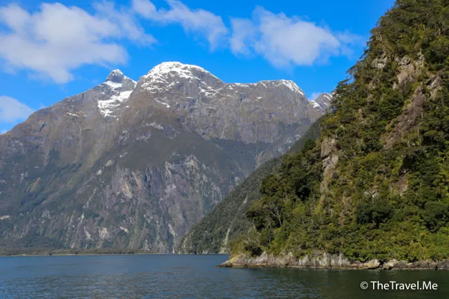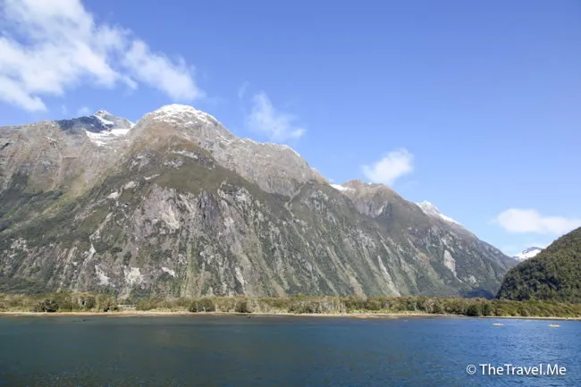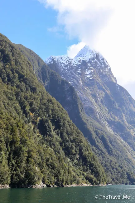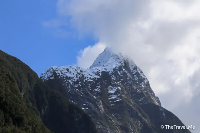 米爾福峽灣被群山包圍,當中最矚目的是主教冠峰(Mitre Peak)。