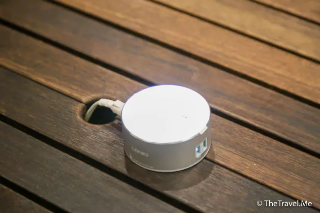 粗眉仔和豬豬食完奇異果之後,便拿行李到下面等車,這時候才發現,酒店接待處旁有一個小小的休息間,更可為手機充電,非常體貼的設計。