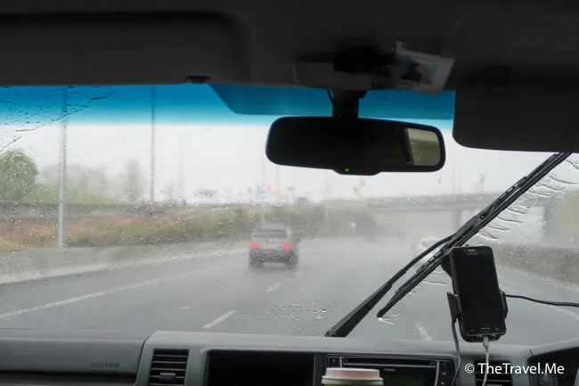 前往機場途中,竟然落起大雨來,粗眉仔真慶幸自己今朝去海旁時天氣可以這麼好。