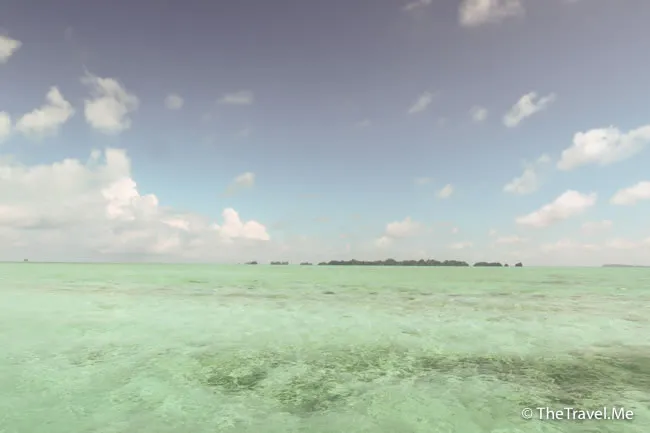 快艇很快便駛到較深的水域,海水由綠轉藍,而且變化多端,恍如一片展示各種藍色的調色板。
